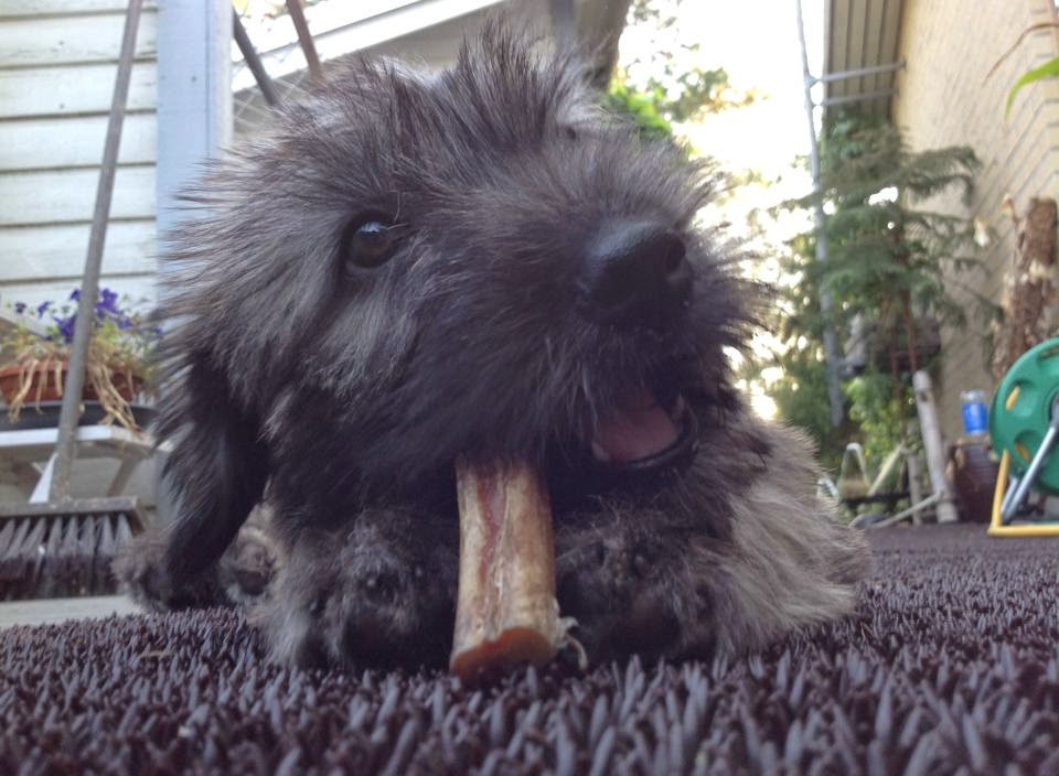Riston suurinta herkkua on sonnin "se". Ensin Ristolla oli pienempi se, mutta Risto päätti haudata aarteensa niin syvälle ettei itsekään enää löytänyt sitä. Sitten mamma hankki niin ison, ettei varmasti huku ;) Tuossa riittääkiin puuhaa, kun odottelee seuraavaa ruoka-annosta.